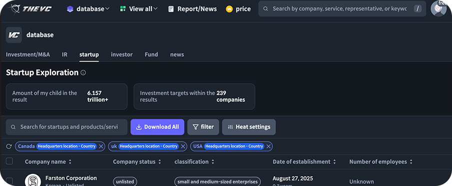 Next, I targeted startups with global ambitions. I used a database called TheVC, which tracks the Korean startup and venture capital ecosystem. I specifically looked for companies tagged with "global expansion" or those listing overseas branch offices.